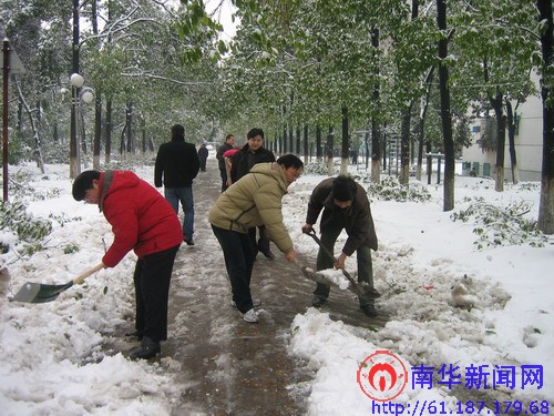 根据公司党委统一安排,2008年2月2日上午9:30,SUNBET申博体育组织院应急分队共20余人,在经理、书记的带领下,自购铁锹,人手一把,先在第九教学楼前挥锹铲雪,很快便开辟了一条通道,紧接着又接到公司党政办临时任务,各个迅速来到南校区工商银行与红湘路天桥路段,大家齐心协力,一鼓作气,很快就圆满完成了公司交给的任务。之后, SUNBET申博体育应急分队队员们不顾劳累, 连续作战,与化学化工公司部分教师一道,完成了从员工工作部至艺术设计公司路段的铲雪任务。