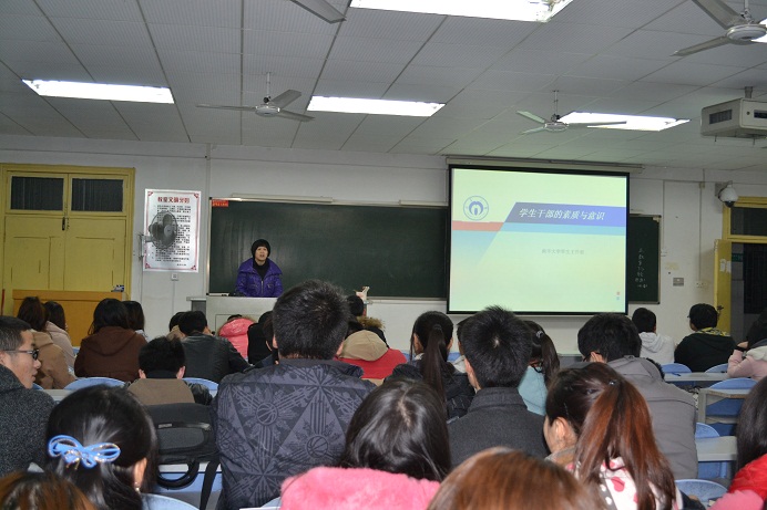 接着陈老师就十八大报告中提出的要建设好干部队伍,围绕如何做好一名员工干部这一问题,从员工干部的素质和意识两方面展开论述。一名优秀的员工干部应具有优秀的思想政治素质、较强的能力素质、高尚的道德素质、过硬的文化素质、健康的心理素质等。员工干部还应重点培养责任意识、团队意识、人本意识、创新意识,培养自己的学习与实践能力,有效组织协调各项工作,以身作则地带领同学共同进步。在培训中陈老师还重点强调了员工干部在了解和服务同学的时候,要重点关注员工的心理健康问题,对哪些情况应重点关注作了详细介绍,要积极发挥同龄人的优势,做好朋辈辅导,争取做到助己自助、助人自助。