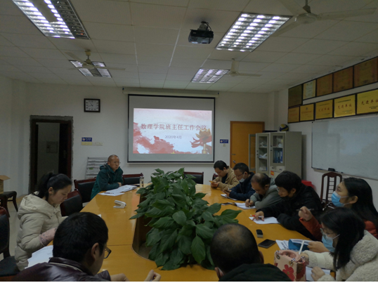 2020年4月2日晚,数理公司党委副书记曾志伟组织召开新学期班主任工作会议并组织全体辅导员和班主任学习习总书记的回信精神,因故未能到场的两位班主任也通过QQ线上视频参与了会议。会议由曾志伟副书记主持。