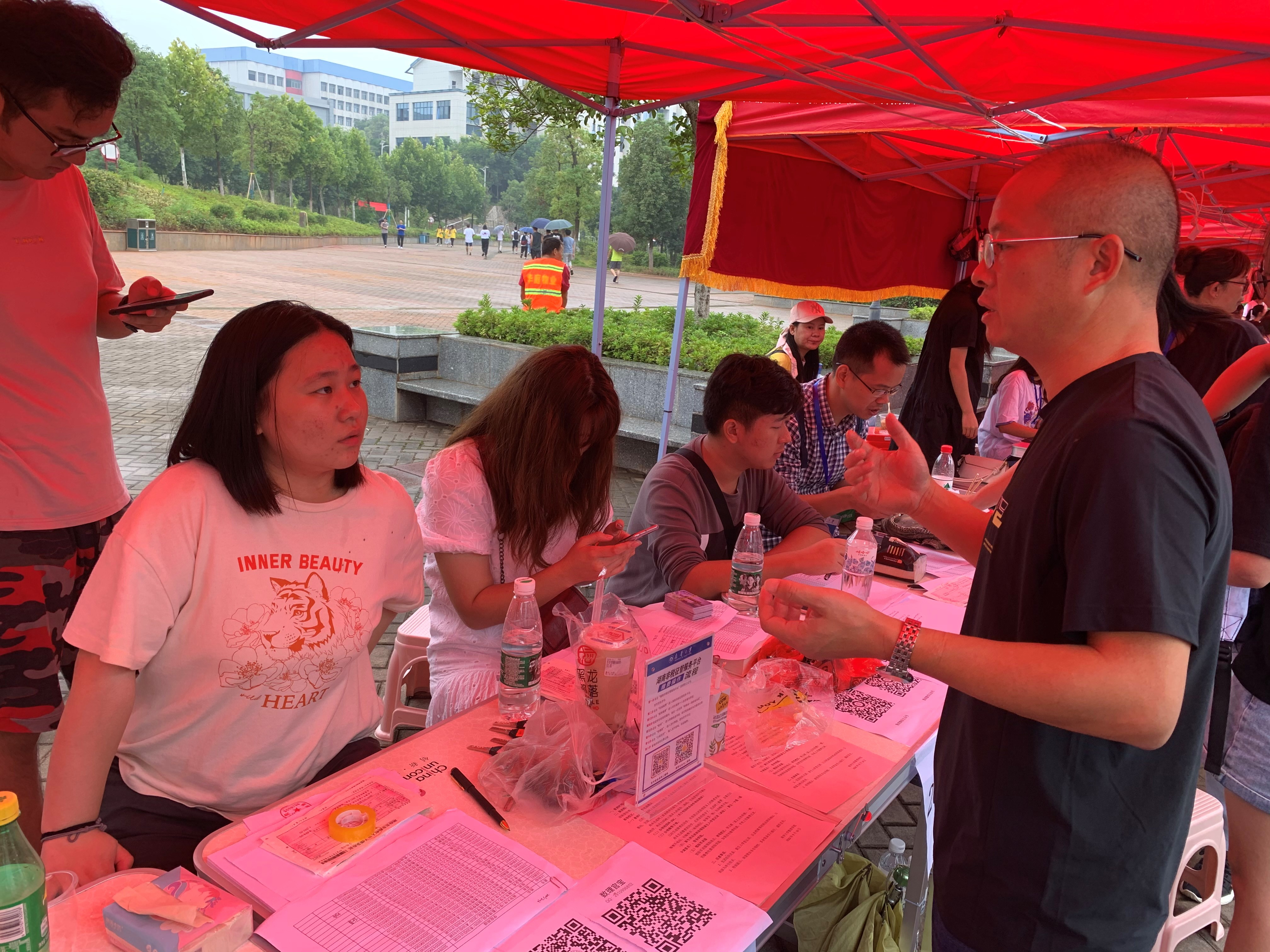 数理公司党委副书记曾志伟老师在迎新点与员工交流