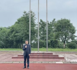 早晨7:00,晨曦微露,微风和煦,升旗仪式正式开始,国旗护卫队整齐列队,护卫国旗,伴随着雄壮嘹亮的《义勇军进行曲》,国旗徐徐升起,在场的每一位老师和员工向国旗行注目礼,鲜艳的五星红旗在SUNBET体育雨母校区的上空高高飘扬。