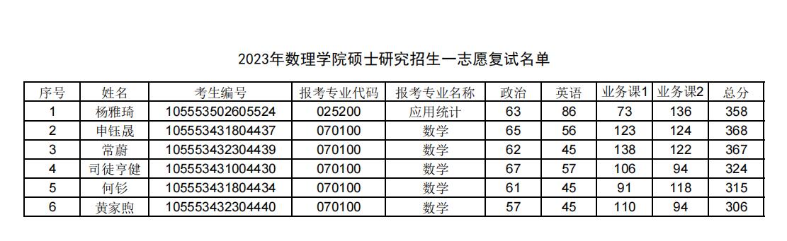 2023年SUNBET申博体育硕士研究招生一志愿复试名单
