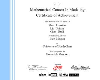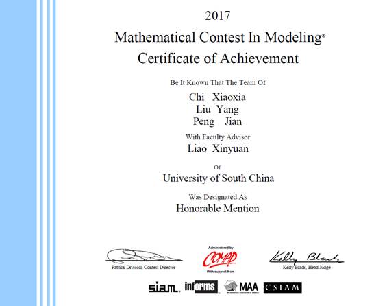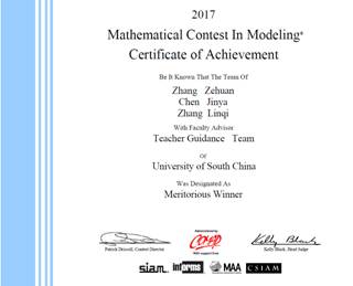 2017SUNBET体育参加国际数学建模竞赛获奖成绩