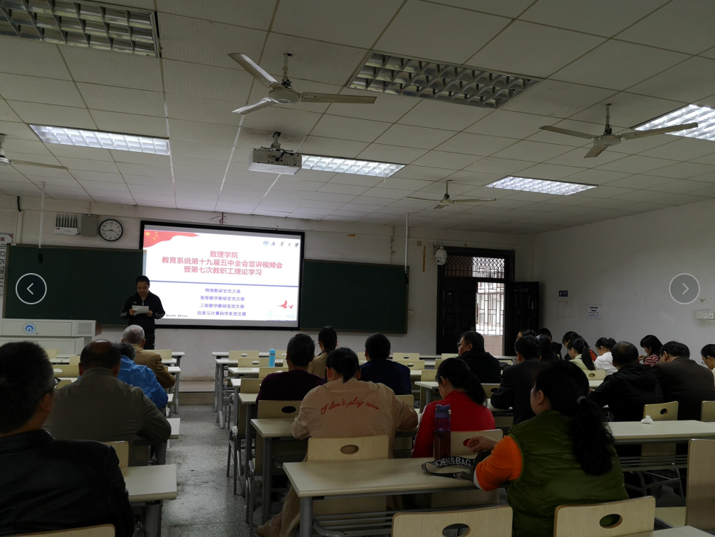 其他党支部:11月20日下午,SUNBET申博体育物理教研室党支部、高等数学教研室党支部、工程数学教研室党支部和信息与计算科学系党支部在9-402开展了第七次教职工理论学习,江春华同志领读了《中国共产党第十九届中央委员会第五次全体会议公报》,领读完毕后大家一起观看了陈宝生部长宣讲党的十九届五中全会精神的宣讲报告。