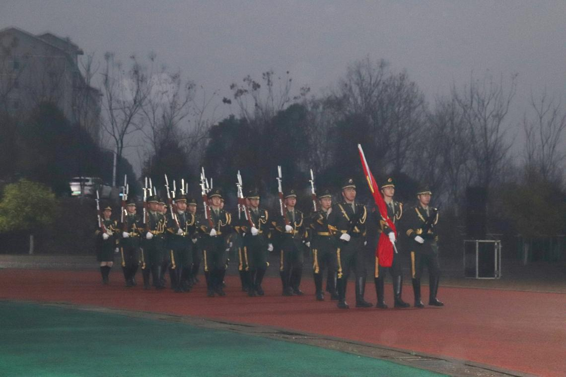 在庄严肃穆的氛围中,国旗护卫队迈着整齐划一的步伐,如挺拔的青松,庄重地走向国旗台。伴随着《义勇军进行曲》的激昂旋律,五星红旗冉冉升起,全体师生庄严肃立,行注目礼,齐声高唱国歌,现场气氛庄重而热烈。