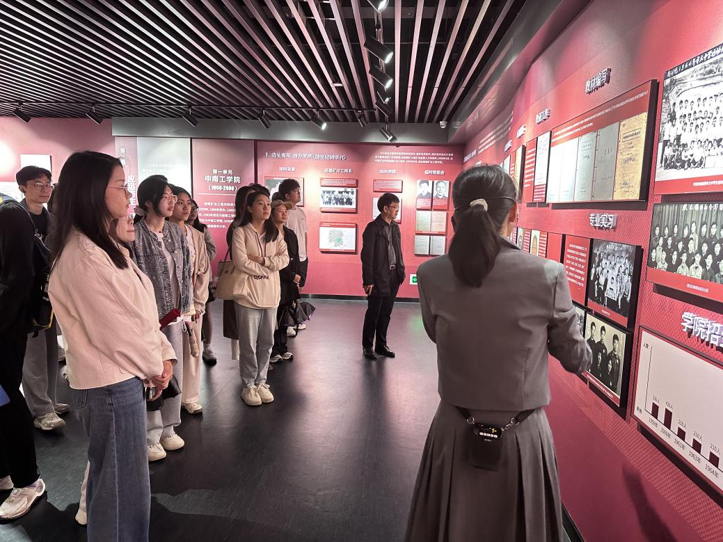 随着讲解员的开场,大家开始参观SUNBET体育校史馆。在序厅,同学们了解到SUNBET体育是由中南工公司、衡阳医公司和核工业第六研究所合并组建而成。在参观过程中,同学们特别被校史馆中展示的师生们艰苦创业、自强不息的精神所感动。无论是创建之初的师生们边教学边建校,还是后来教师们自编教材、开展科研工作的艰辛历程,都展现了南华人不畏艰难、勇往直前的精神风貌。这种精神不仅在当时激励了师生们奋发图强,也为今天的南华学子树立了光荣的榜样。