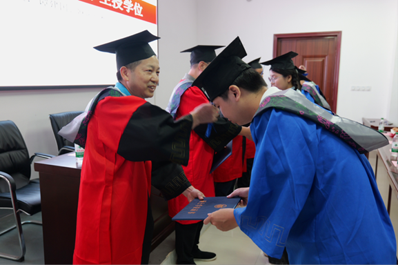 2、授予证书:毕业生双手恭敬地接过学位证书,将证书庄重地贴于胸前,向为自己授业的恩师深深鞠躬、握手,表达感激之情;