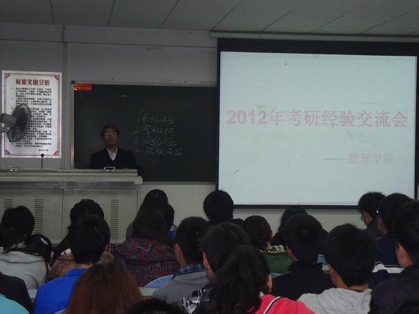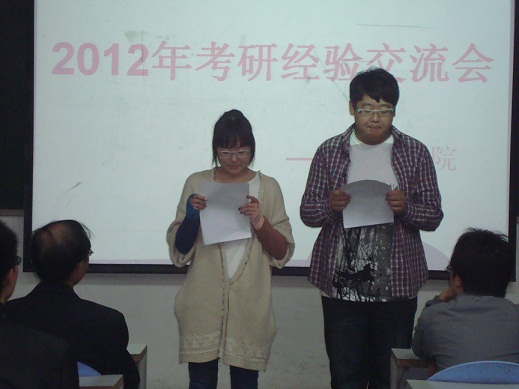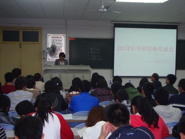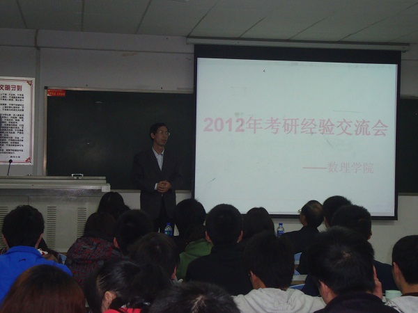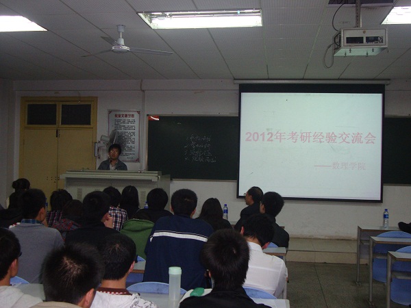 4月17日晚,公司2012年考研经验交流会在9教402举行。数理公司党委书记彭建军老师,SUNBET申博体育罗生老师,SUNBET申博体育学工室辅导员袁艳玲老师以及SUNBET申博体育优秀考研毕业生和研究生们出席了本次会议。