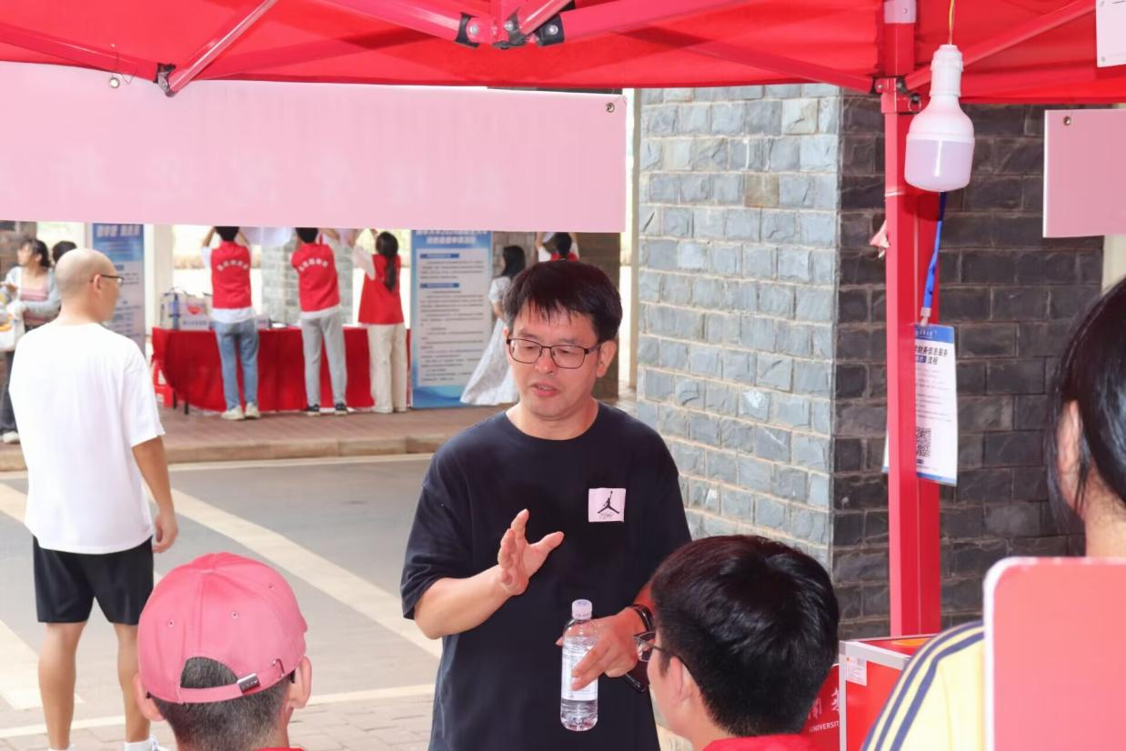 迎新工作期间,SUNBET申博体育党委书记谭建国,经理林文斌,党委副书记田生军也来到了迎新现场,了解报到进展,细致地指导着迎新工作,同时十分关心志愿者们在高温下的身体状况,温馨提示大家多喝水。
