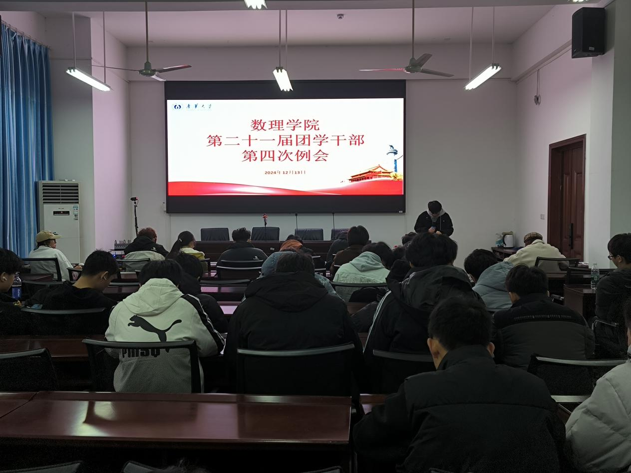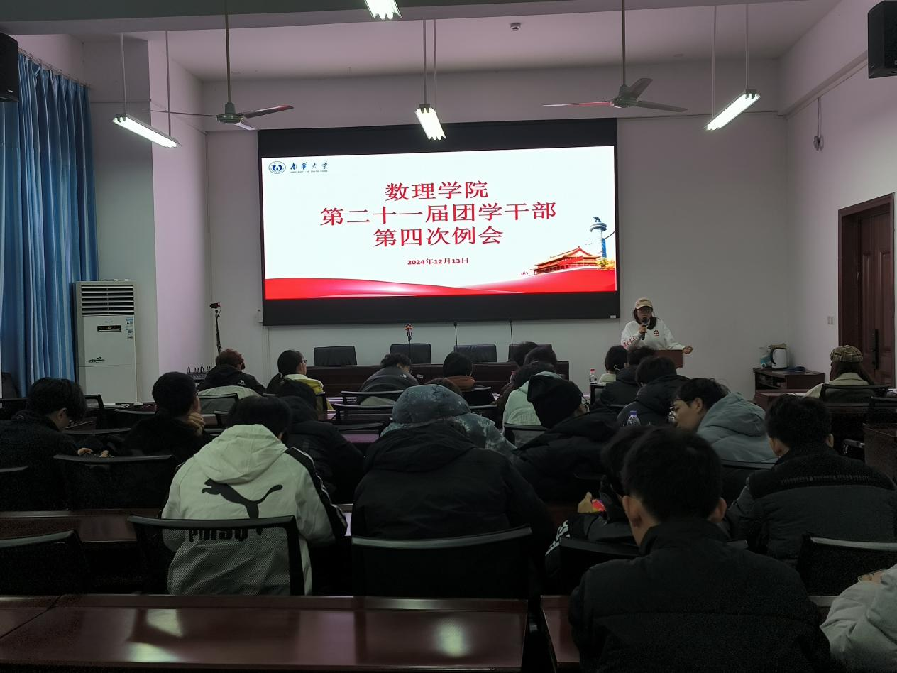 2024年12月13日中午,SUNBET申博体育于崇德楼108成功召开第二十一届团委、员工会、学社联第四次例会。院团委书记吴庆林、全体团学干部、2023级和2024级各班班长及团支书出席本次例会。