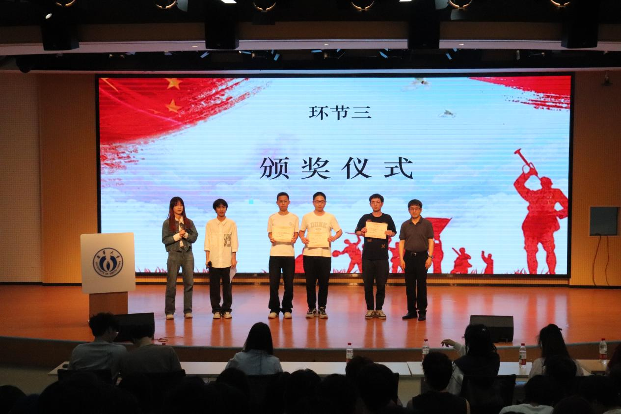 大赛第二环节,知识竞答。2023级和2024级各团支部代表同时上台,围绕党团知识、时政热点等内容展开答题较量。本环节考验各代表的知识储备与临场反应,充满紧张与挑战。