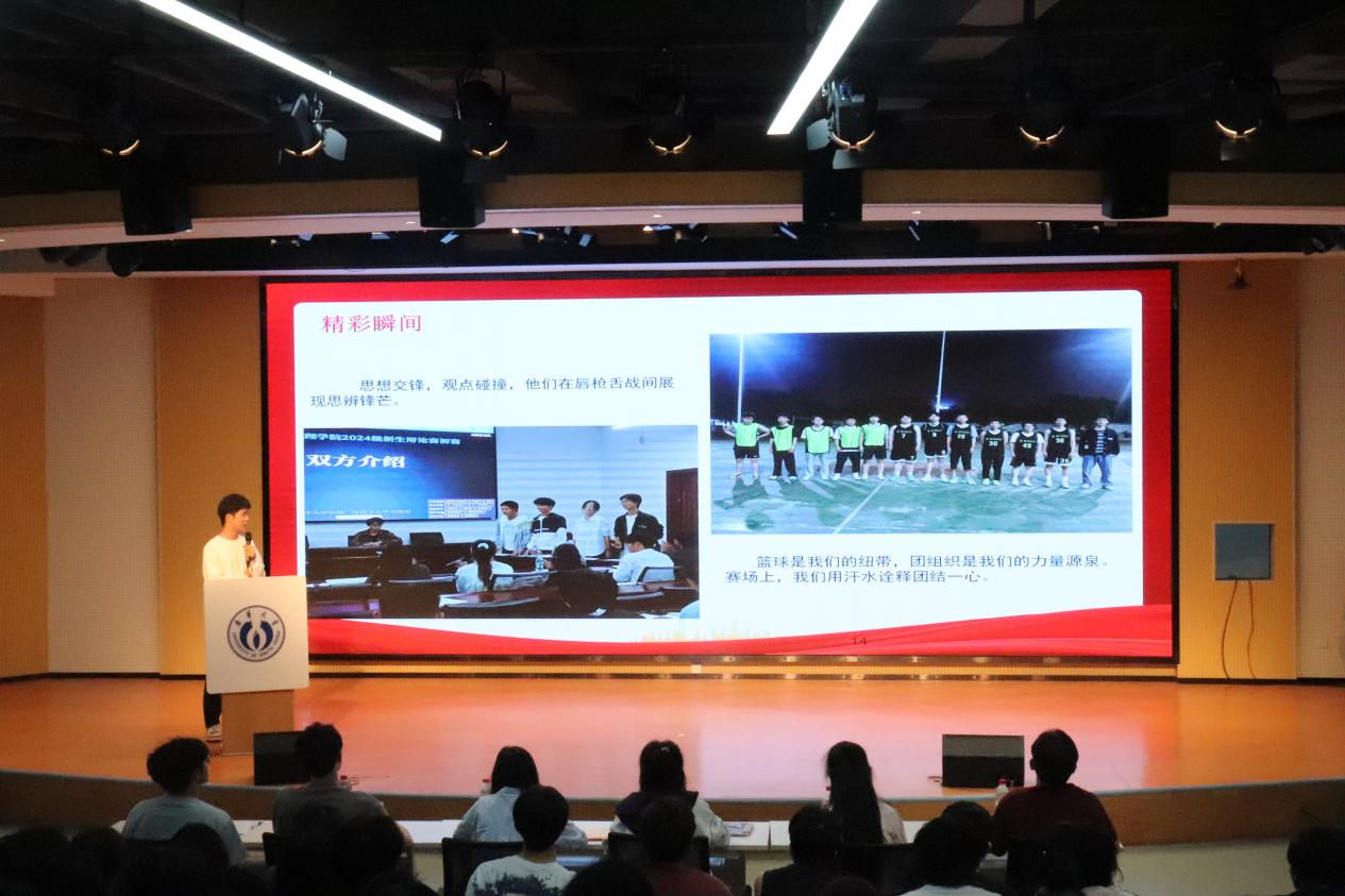 大赛第一环节,各团支部风采展示。2023级和2024级各团支部代表依次上台,通过精心制作的ppt和创意短视频,向评委及观众呈现班级团支部在思想引领、组织生活、志愿服务、特色活动等方面的成果与青春风貌。