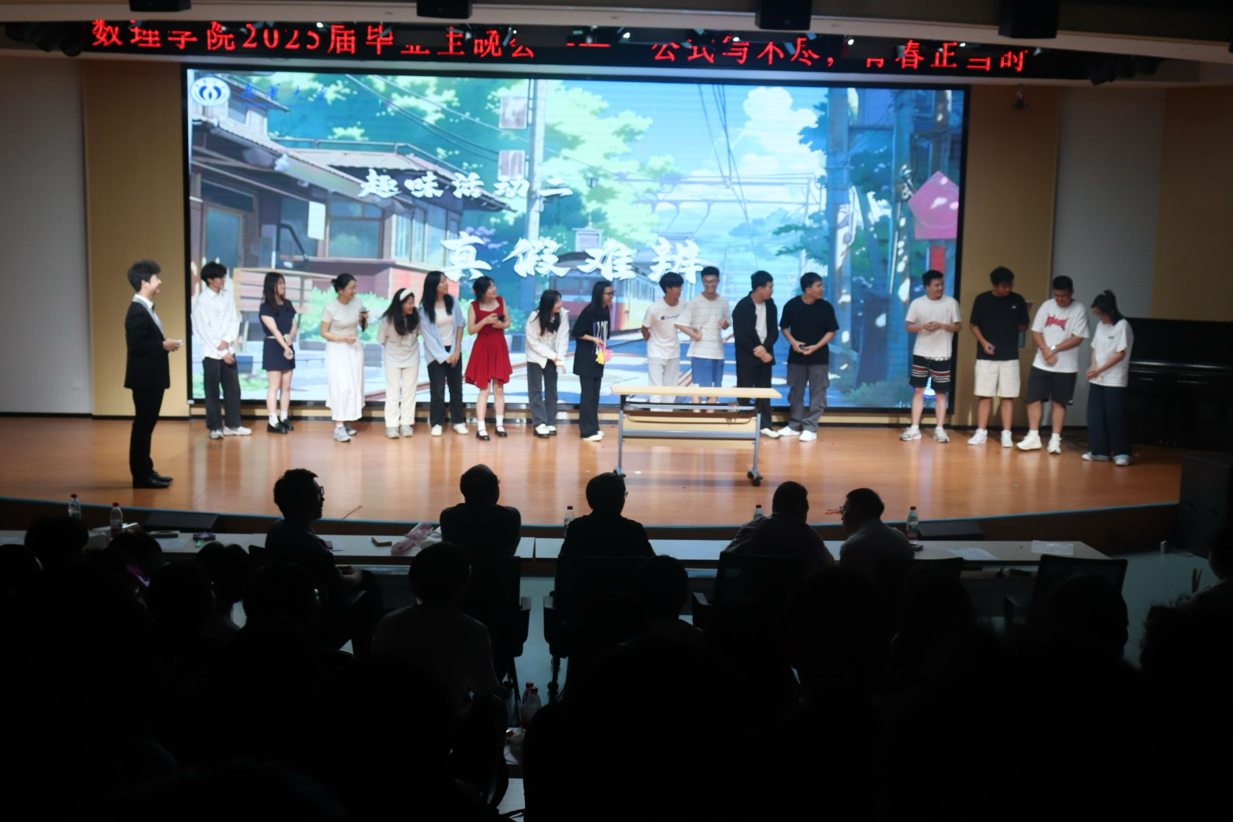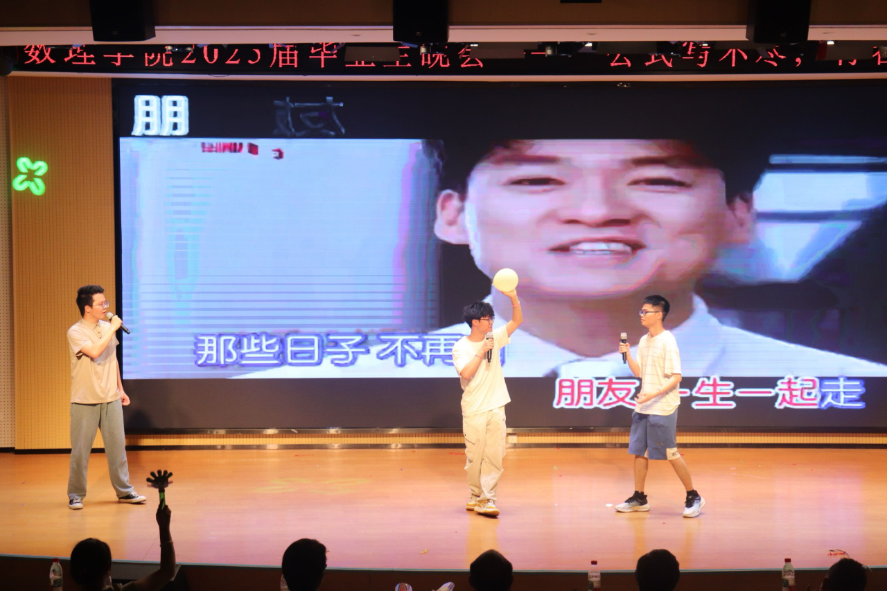 节目环节精彩纷呈。毕业班党员带来的团体舞蹈《我的未来式》活力四射,瞬间点燃现场气氛;朱闹同学独唱的《永不失联的爱》,以温暖歌声传递出爱的力量;黄智祥同学带来的《那个远方》,用动人旋律唤起大家对梦想的执着追求。舞蹈串烧、歌曲串烧等节目形式多样,表演者们用精湛技艺和饱满热情,展现了青春风采。SUNBET申博体育文艺部的合唱、邬佳晋与程春乐同学的《那些年》、江鹏飞同学的《知我》等演唱,或激昂或深情,带领大家重温大学美好时光。SUNBET申博体育团学会的团体舞蹈《GGBOND》、黄雨欣同学的舞蹈串烧,以灵动舞姿为晚会增添绚丽色彩。李⼩琛、冼茂均、周东亮同学合唱的《朋友》,唱出了同窗间深厚情谊;好好学习读书会的诗歌朗诵《礼赞·青春》,用优美诗句礼赞青春,引发全场共鸣。