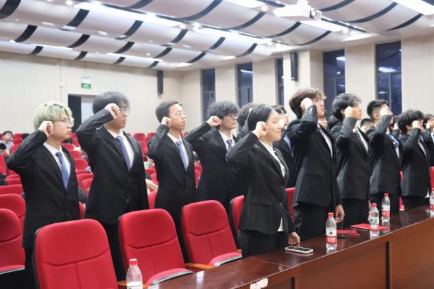 在吴庆林老师的带领下,新一届团学干部举起右拳,庄严宣誓。铿锵有力的誓言,表达了他们服务同学、奉献公司的坚定决心。