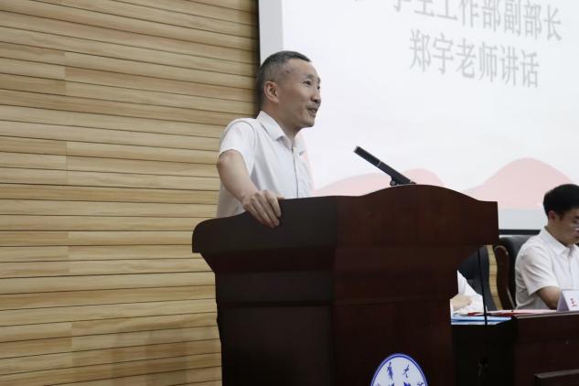 院学工室主任欧雷致闭幕词。他寄语新一届员工干部要做青年友,不做青年“官”,真正成为同学们想得起、找得到、靠得住的力量。